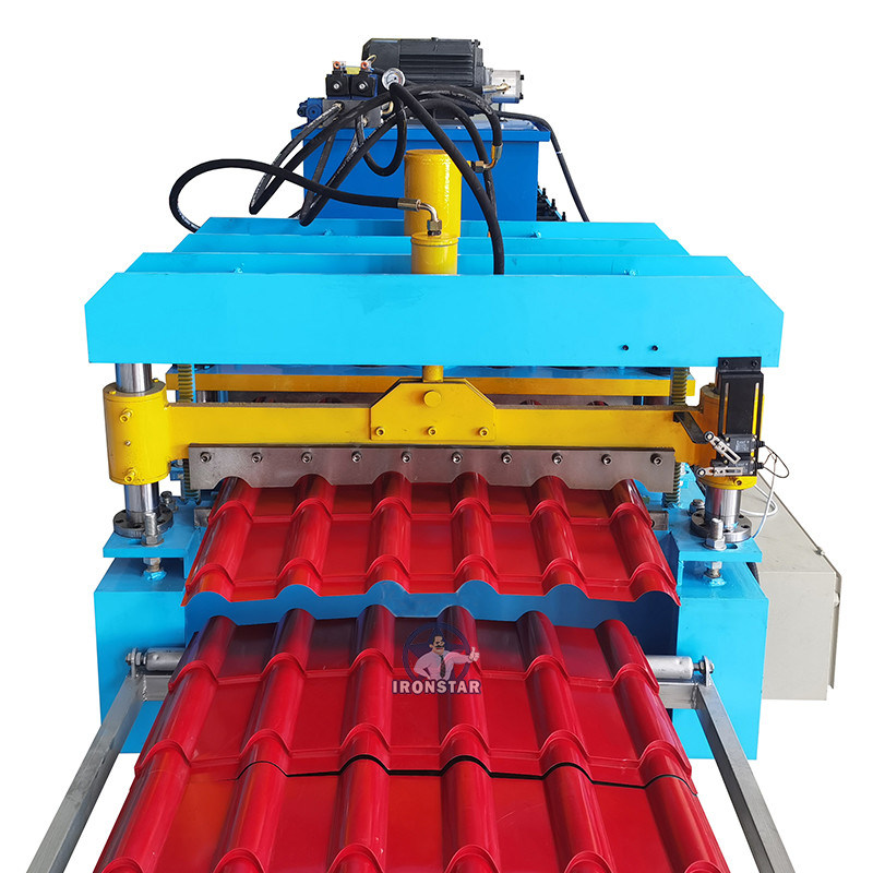 De tegel die machines maken het vormen van populaire machine rollen verkoopt in vele landen, gemeenschappelijke tegel die machines het rollen dikte van 0.3-0.6 mm maken, materieel gebruiksppgi (Vooraf geverft Gegalvaniseerd Staal) materiaal