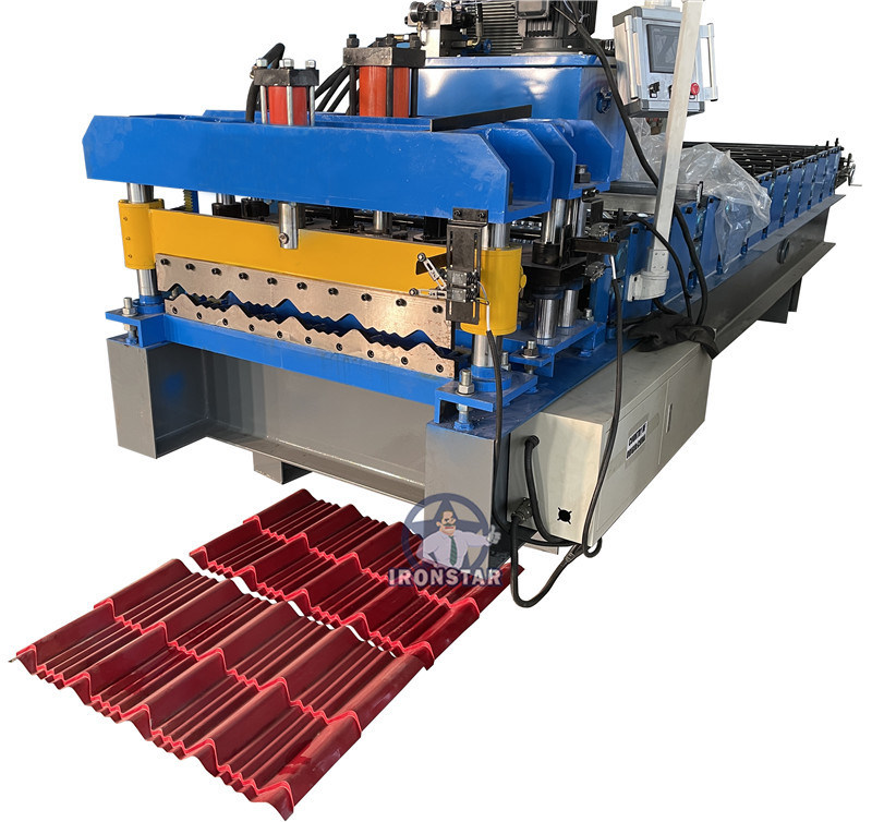 De tegel die machines maken het vormen van populaire machine rollen verkoopt in vele landen, gemeenschappelijke tegel die machines het rollen dikte van 0.3-0.6 mm maken, materieel gebruiksppgi (Vooraf geverft Gegalvaniseerd Staal) materiaal